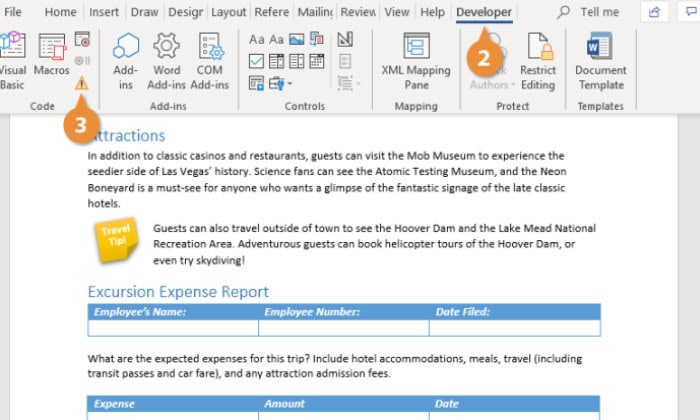 - Close the code window by selecting the save icon. Select View > Macro > View Macros to return to the document window.