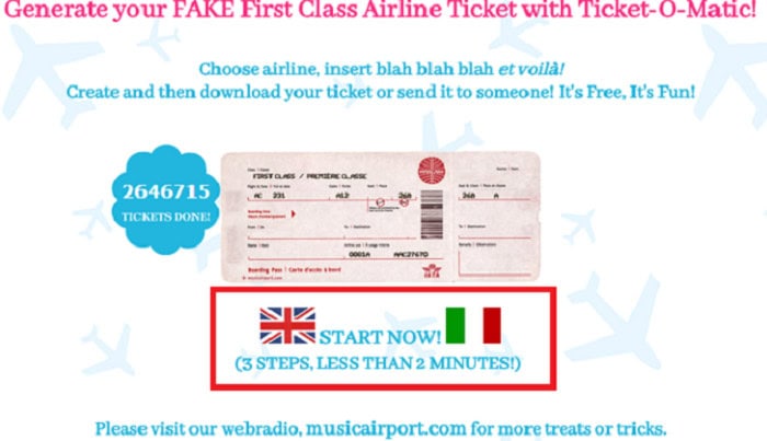 A fake airline ticket is just like other sites providing replicas of flight tickets or boarding passes. The fake flight tickets also offer dialogue boxes to “from” and “to” options as well as a “when” option.