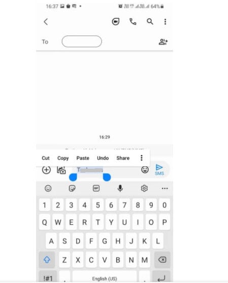 Step 1] Open an app that supports the copying feature. For example, let’s take the messages. Press and select the clipboard option in the space where we type the text.